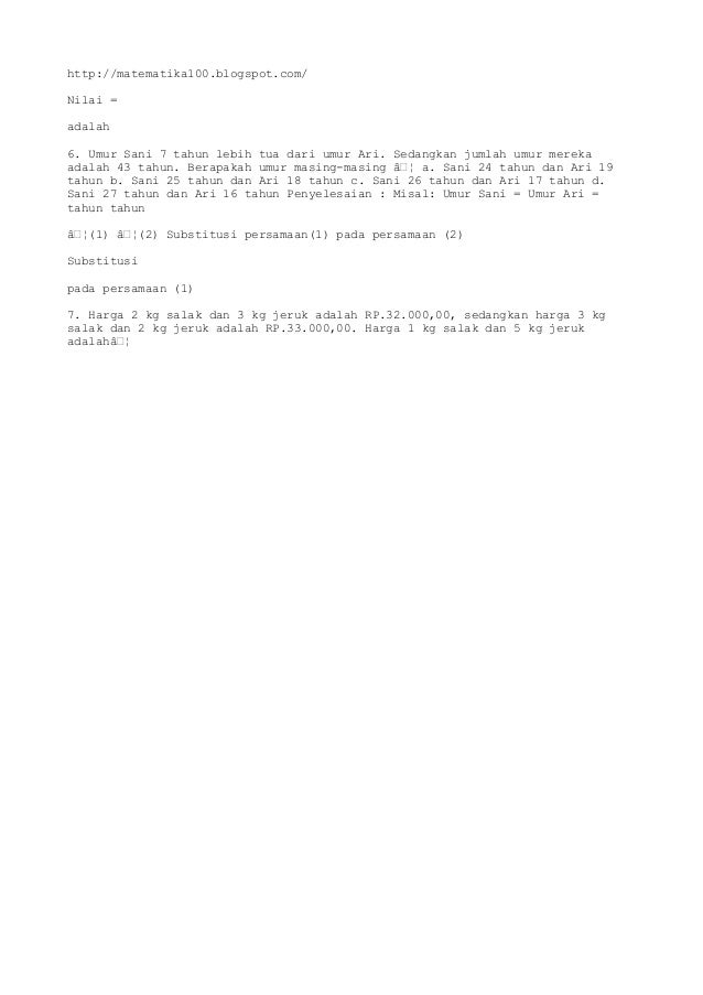 Dua Tahun Yang Lalu Umur Ayah Tiga Kali Umur Budi Ditambah Delapan Tahun Jika Jumlah Umur Mereka Brainly Co Id from id-static.z-dn.net Soal dan pembahasan bilangan bulat dan pecahan kel. Jika usia dina adalah 18 tahun maka jumlah usia ketiga orang tersebut adalah. Susi dan yuli berlari di lintasan 5 jumlah umur ika dan turi = 40 tahun 1 3 dan 5 c. Tujuh tahun yang lalu umur ayah sama dengan 6 kali umur budi. Penyelesaian soal perbandingan dan skala perbadingan dan skala merupakan salah satu materi yang diujikan dalam ujian sekolah berst. Perbandingan usia budi dan adik nya adalah 4:3.jika selisih usia mereka 4 thn,maka jumlah usia mereka adalah.